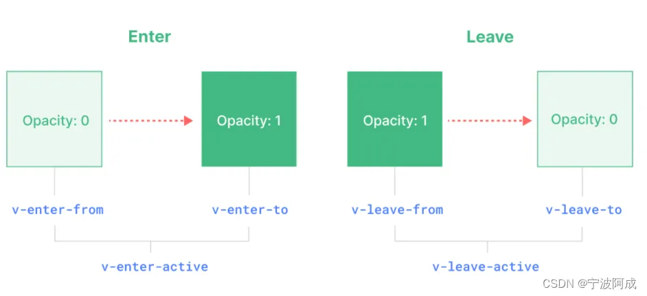 v-leave-from:离开动画的起始状态。在离开过渡效果被触发时立即添加,在一帧后被移除。
