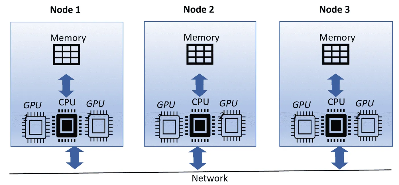 集群计算是实现大规模算法并行处理的一种方式。在集群计算中,我们有多个通过高速网络连接的节点。大规模算法被提交为作业。每个作业被分成各种任务,并且每个任务在单独的节点上运行。