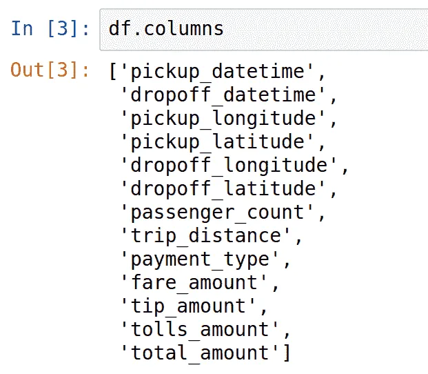 让我们来看看 DataFrame 的列: