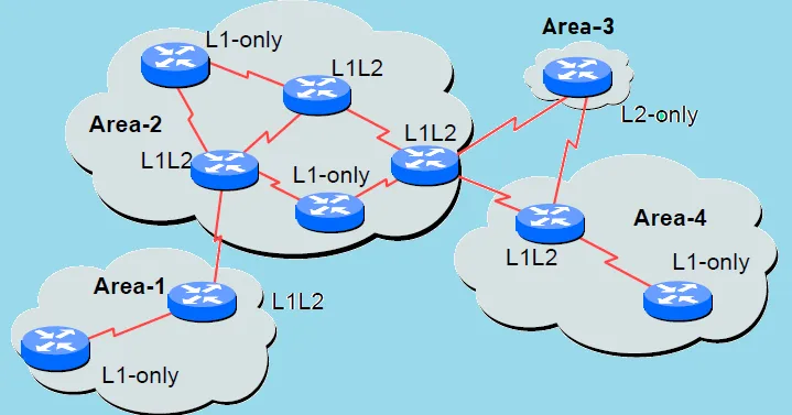 IS-IS将网络划分为区域,每个区域由一个IS-IS路由器负责。IS-IS的区域划分相对简单,包括Level 1区域和Level 2区域,以及连接两者的L1/L2路由器。