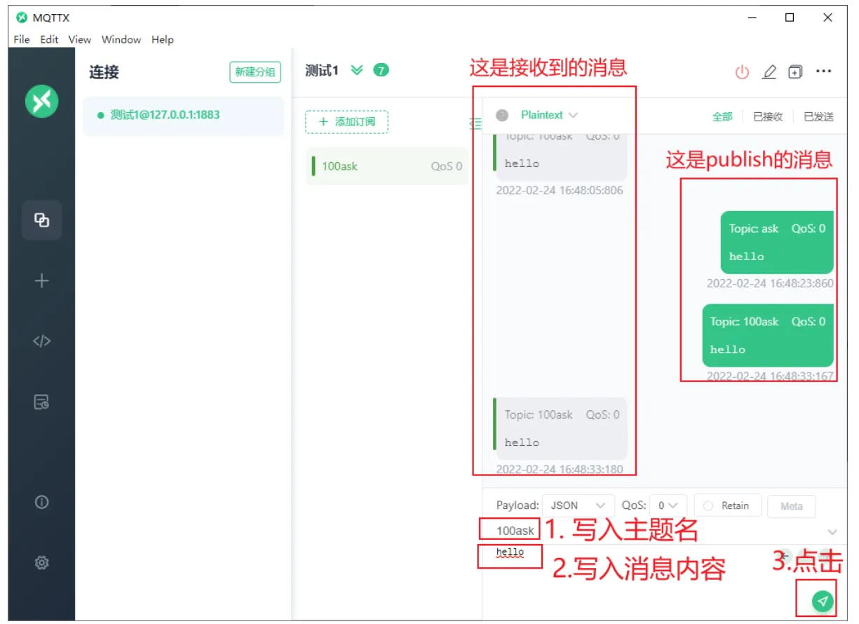 .\mosquitto_pub.exe -h 127.0.0.1 -p 1883 -t "100ask"