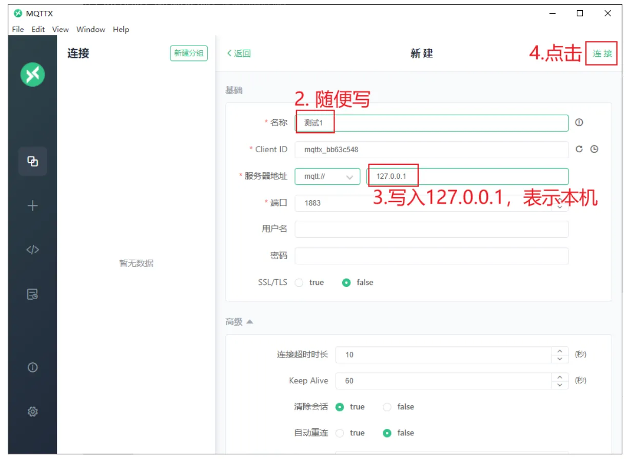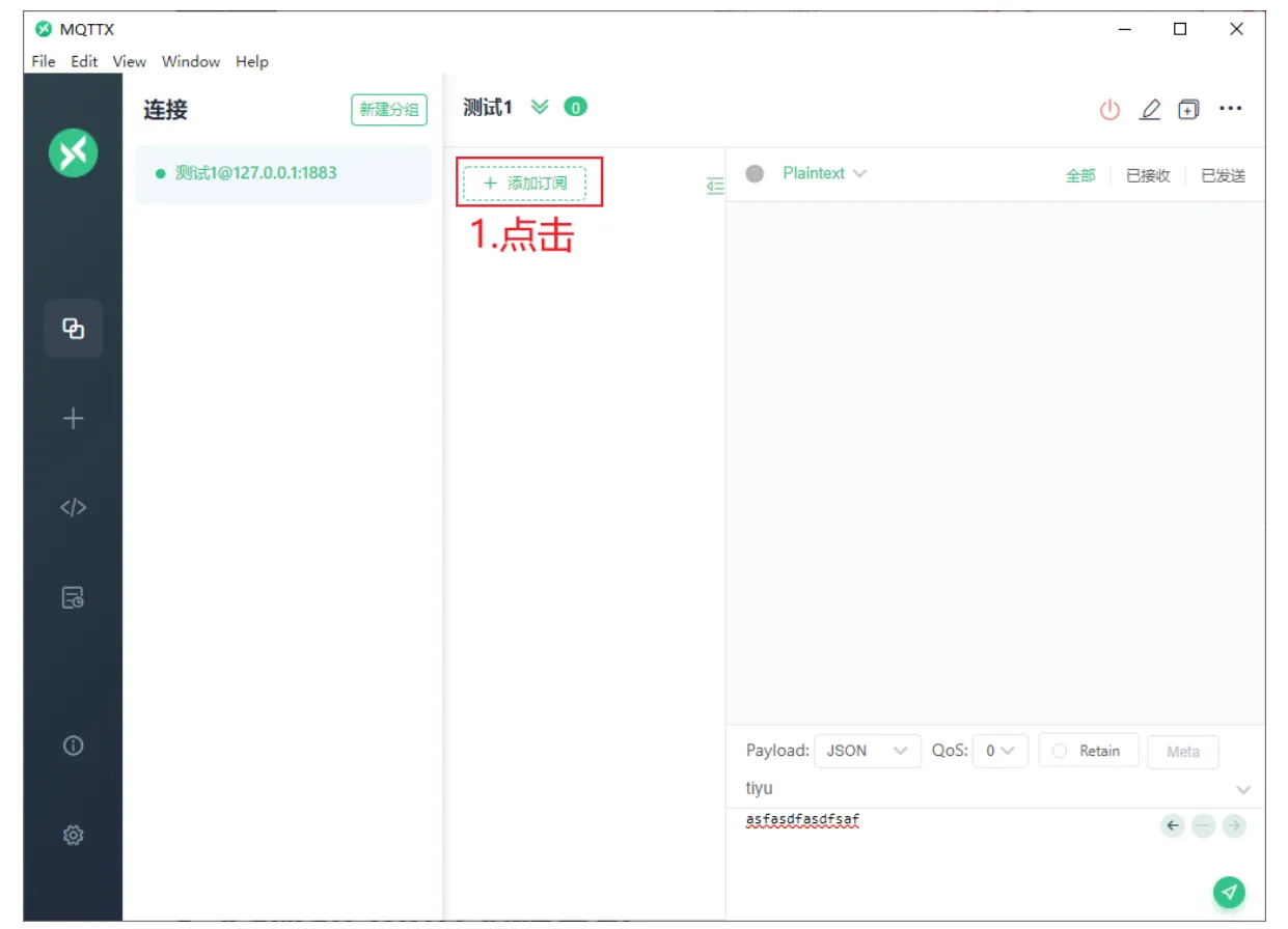 在下面的实验中,无论是使用MQTTX还是使用mosquitto_pub/mosquitto_sub,都要保持mosquitto.exe在运行。