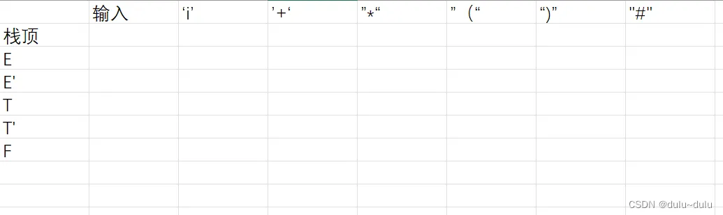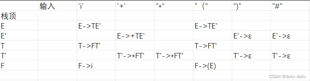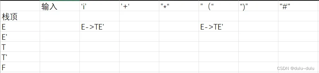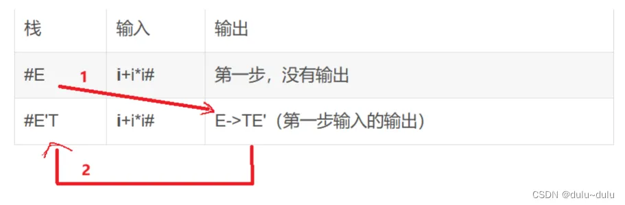| #E'T | i+i*i# | E->TE'(第一步输入的输出) |
