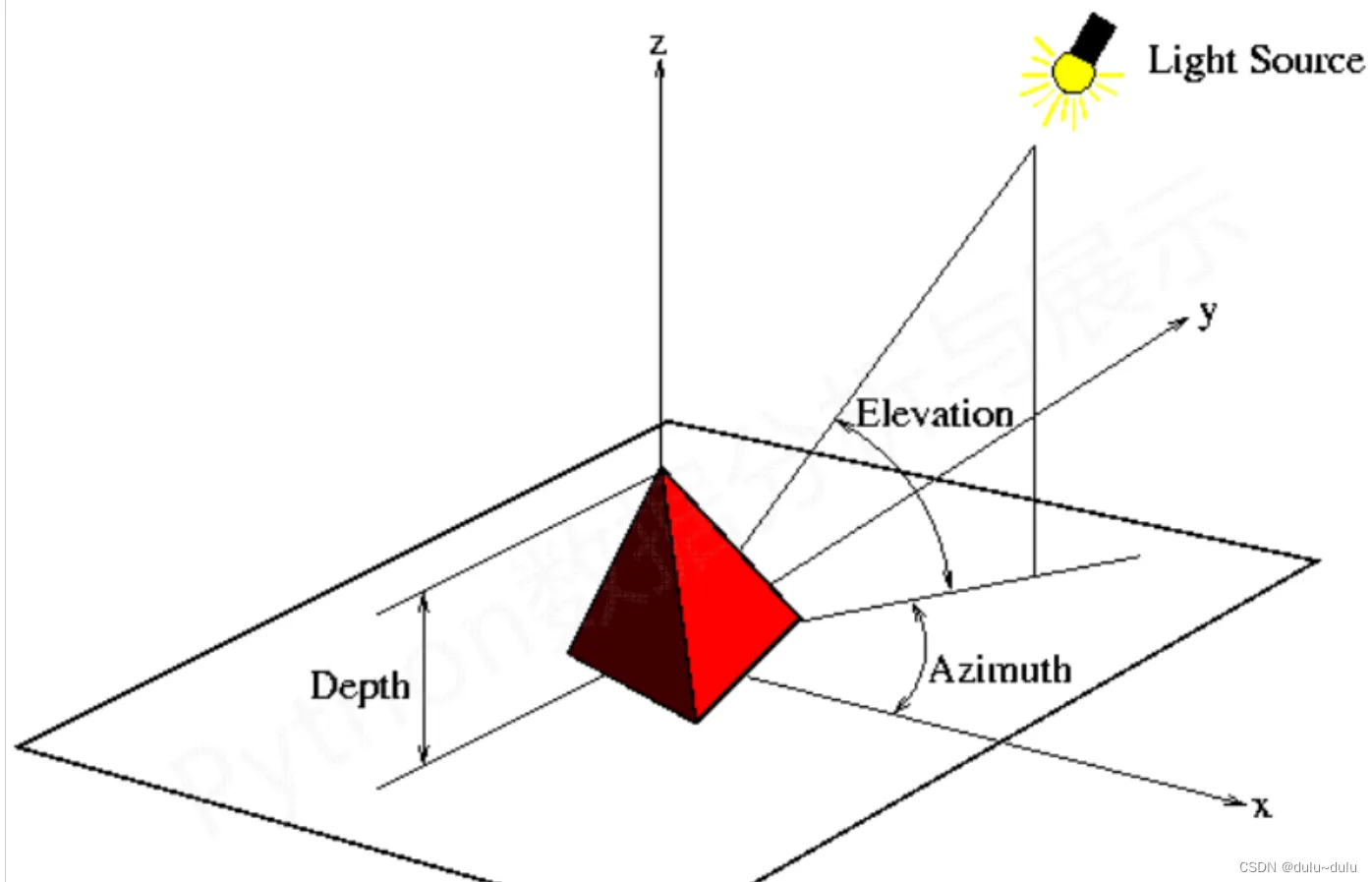 将光源定义为三个参数:方位角vec_az、俯视角vec_el 和深度权值depth。两个角度的设定和单位向量构成了基础的柱坐标系,体现物体相对于虚拟光源的位置。