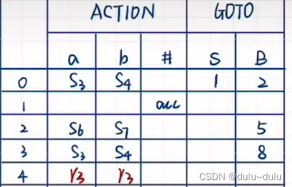 I4:B-->b,a/b,其是拓广文法中的(3)B--> b 那么我们将向前搜索符(“,”)后面的字符(a/b)填充入r3