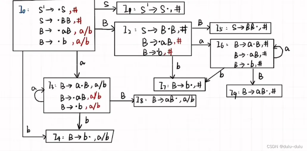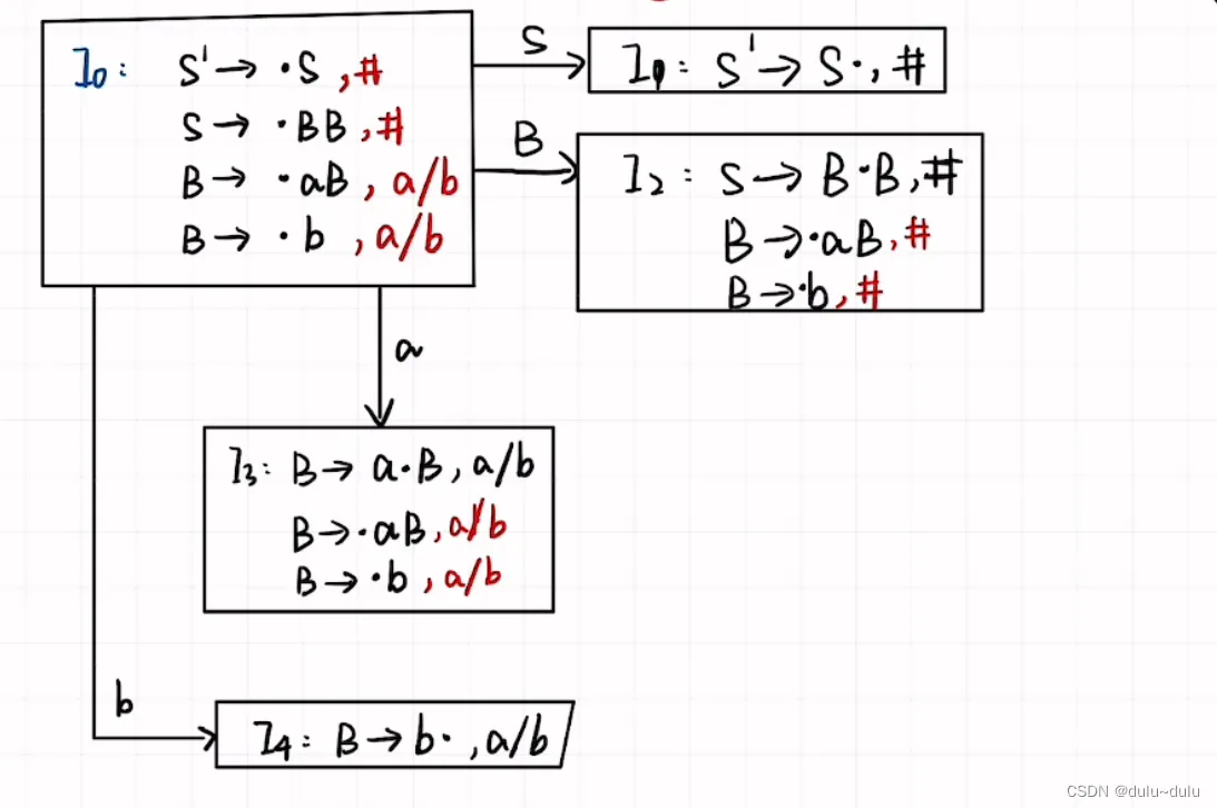所以B--->•aB ,a/b,所以I0的情况如下: