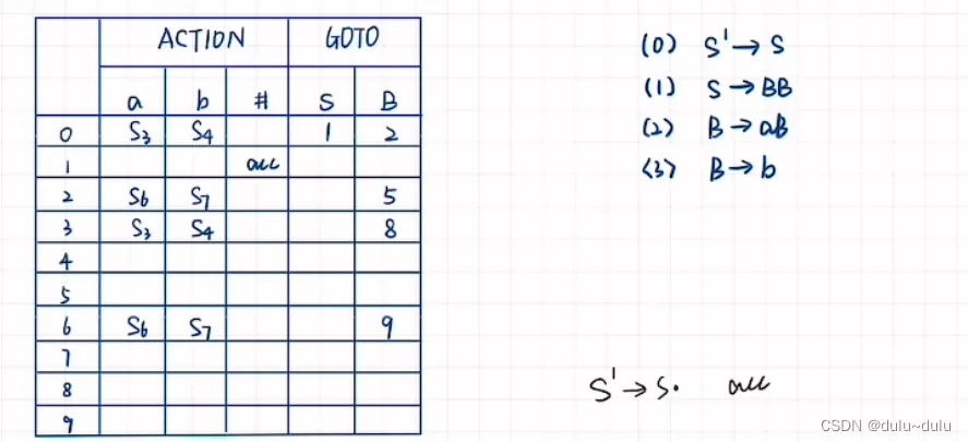 所以文法(0) S‘-->S后面添加的就是 (0)S'--->S,#