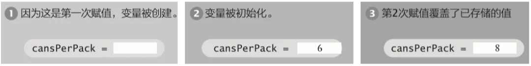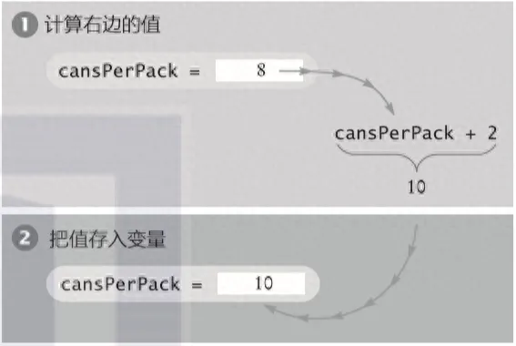 会把变量cansPerPack中存储的6改变为8。图2-1演示了上面的赋值语句。
