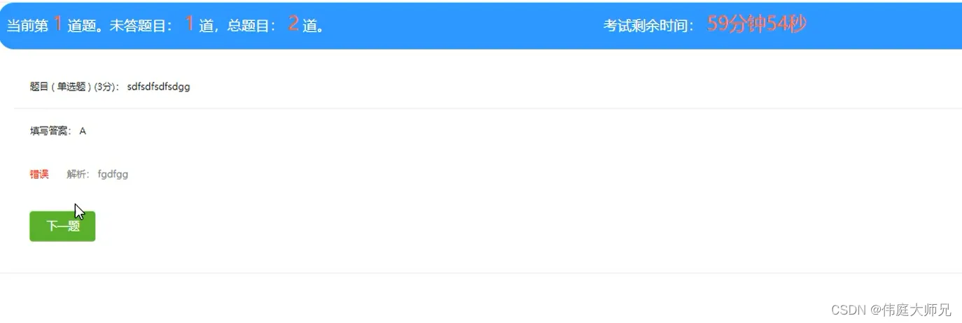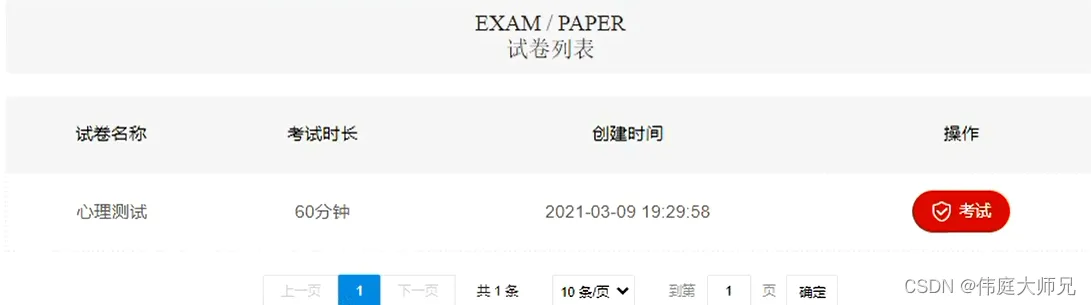 学生在试卷列表界面可查看所有试卷,并可选择考试,试卷列表界面展示如图5-4所示,考试界面展示如图5-5所示。