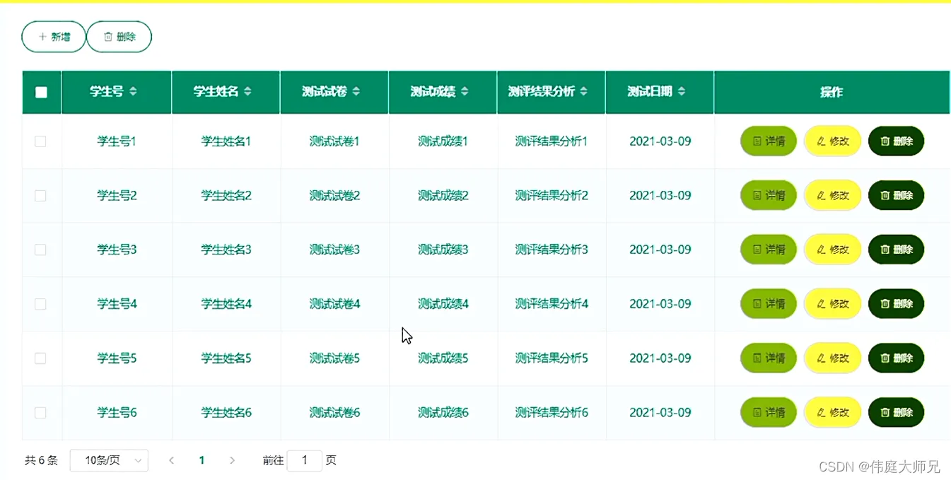 管理在学生管理界面可查看所有学生信息,并可对其进行修改和删除操作,学生管理界面展示如图5-8所示。