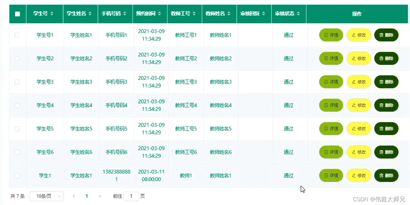 管理员可查看学生辅导预约信息,并可对其审核,其管理界面如图5-10所示。