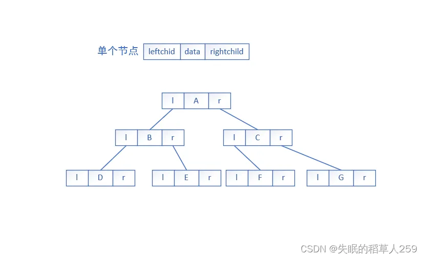 typedef int DataType; struct Node { struct Node* _leftChild; // 指向左孩子结点 struct Node* _rightChild; // 指向右孩子结点 DataType _data; // 结点中的数据域 };