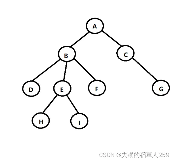 叶节点 | 度为0的节点 如H、I、F、G节点 |
