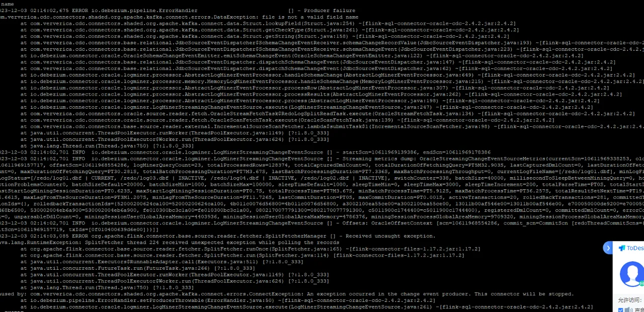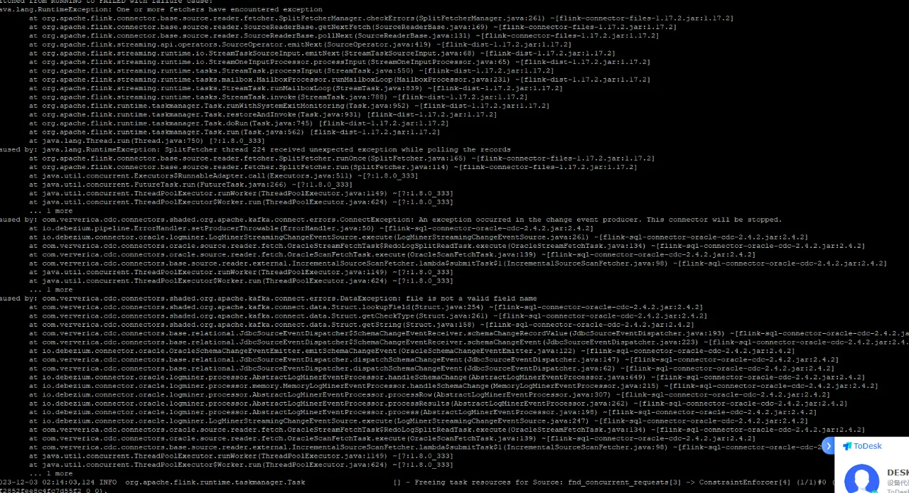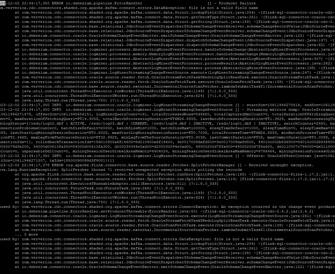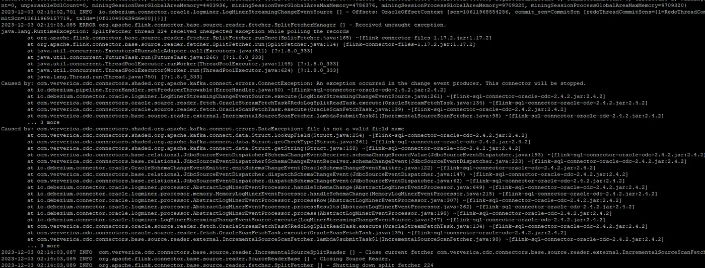 at io.debezium.connector.oracle.logminer.LogMinerStreamingChangeEventSource.execute(LogMinerStreamingChangeEventSource.java:261) ~[flink-sql-connector-oracle-cdc-2.4.2.jar:2.4.2]