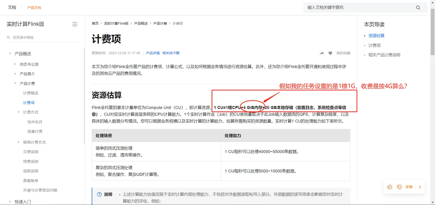 问题二:在Flink如果我有1CU资源,只使用其中一部分内存,也是按1CU扣费么?