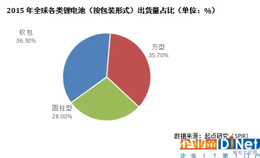 在三种形状的锂电池电芯中,起点研究(SPIR)调研数据显示,2015年,软包电芯与方型电芯产量相当,出货量均在36GWH左右,均超过圆柱电芯,而圆柱电芯的需求量则为26.68GWH,占比约为28%。随着新能源汽车市场的发展,未来对方型电芯的需求量将进一步扩大,2016年方型电芯占据市场的四成左右。