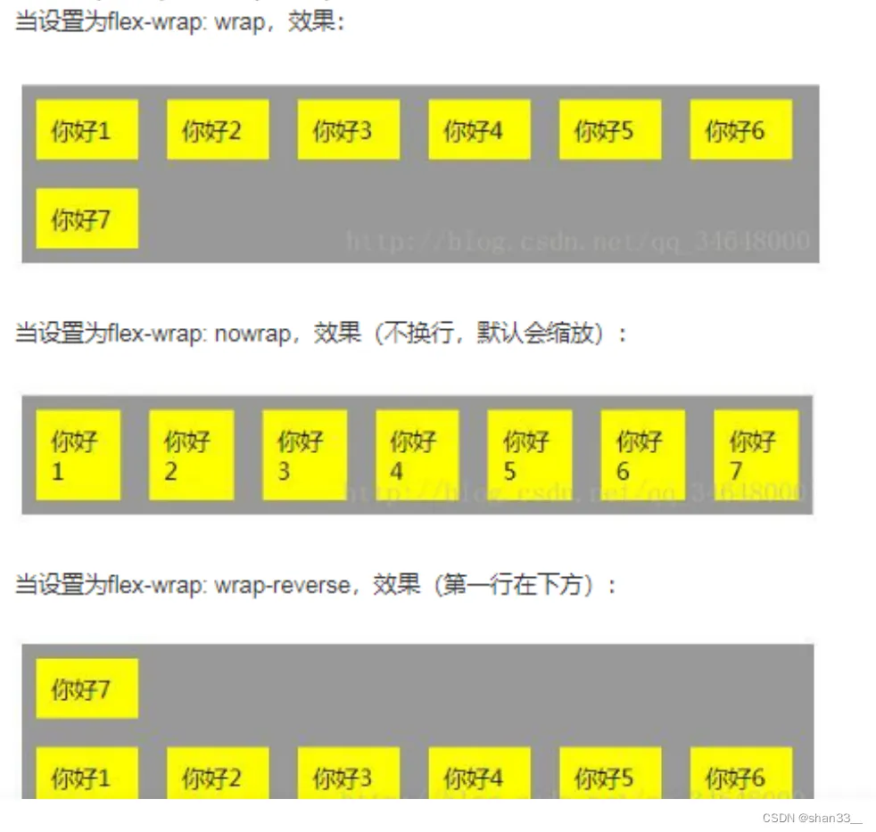 - flex-wrap的属性值包括wrap、nowrap、wrap-reverse,默认属性值为nowrap,