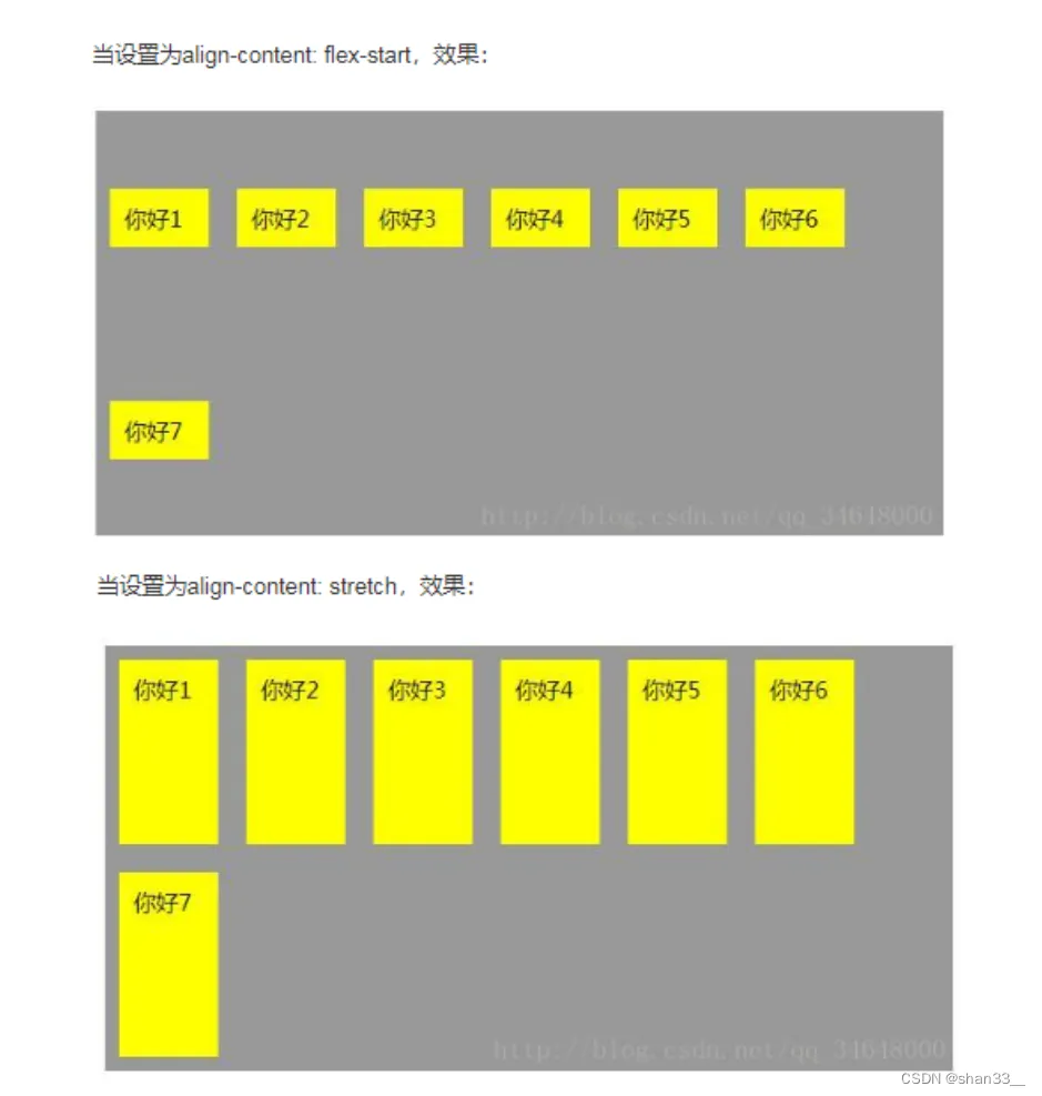 - 当使用弹性布局之后,里面的float、clear(清除浮动 clear:both)、vertical-align(元素内部文本或内联元素在垂直方向上的对齐方式)属性将失效。