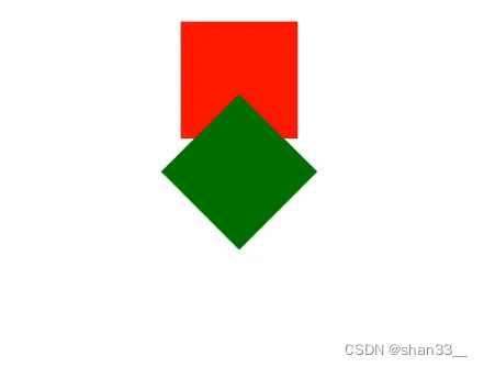 - 旋转后多出来的区域不会占用空间,在页面上显示多出来的部分会浮在上面,对其他元素的部分进行了遮挡。eg: