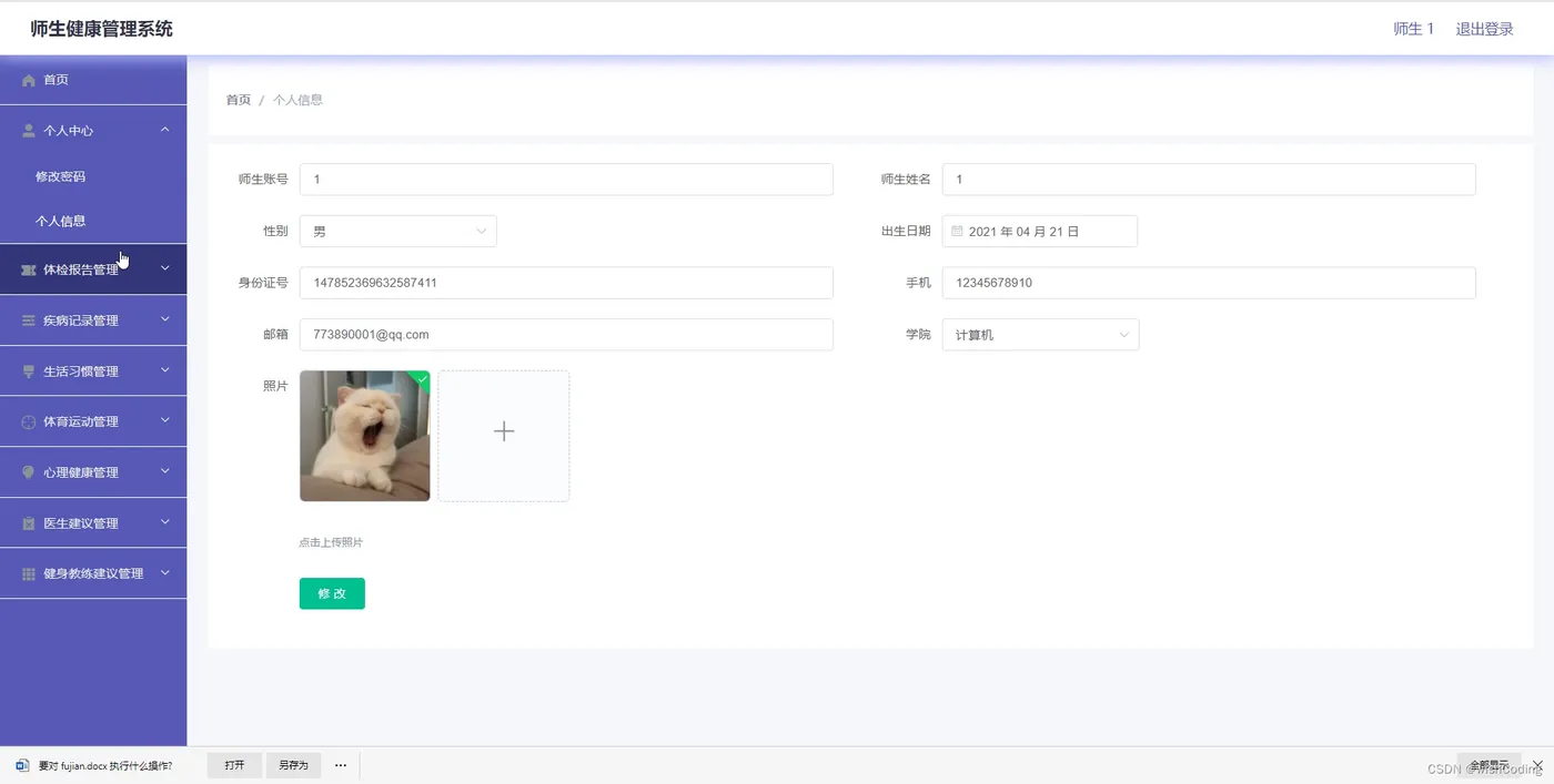 简介: 基于ssm+vue.js的楚师师生健康管理系统附带文章和源代码设计说明文档ppt