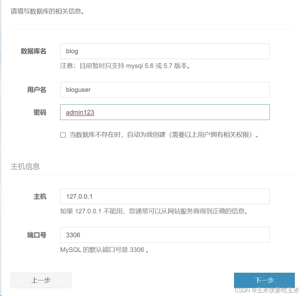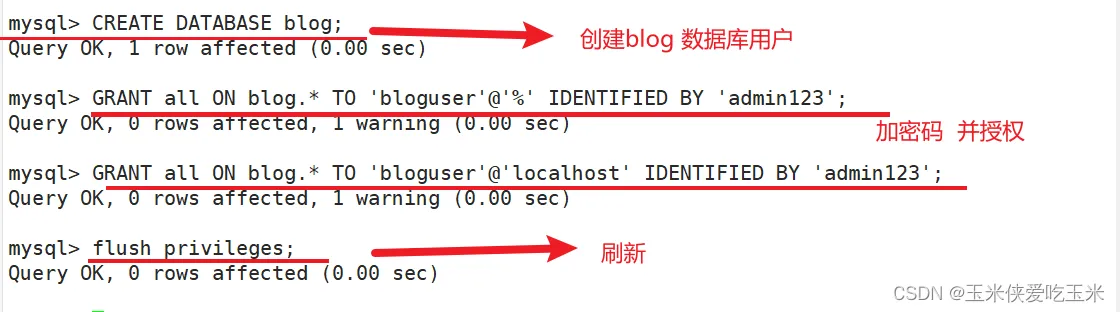 7,创建 叫blog 的数据库账号 给博客软件使用