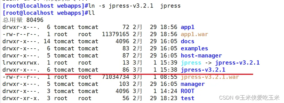 可以注意到 因为war包 是又tomcat 自己解压的 所以属主数组还是 tomcat
