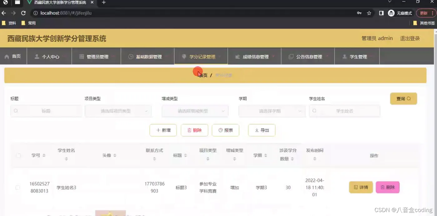基于SpringBoot+Vue+uniapp的西藏民族大学创新学分管理系统的详细设计和实现(源码+lw+部署文档+讲解等)
