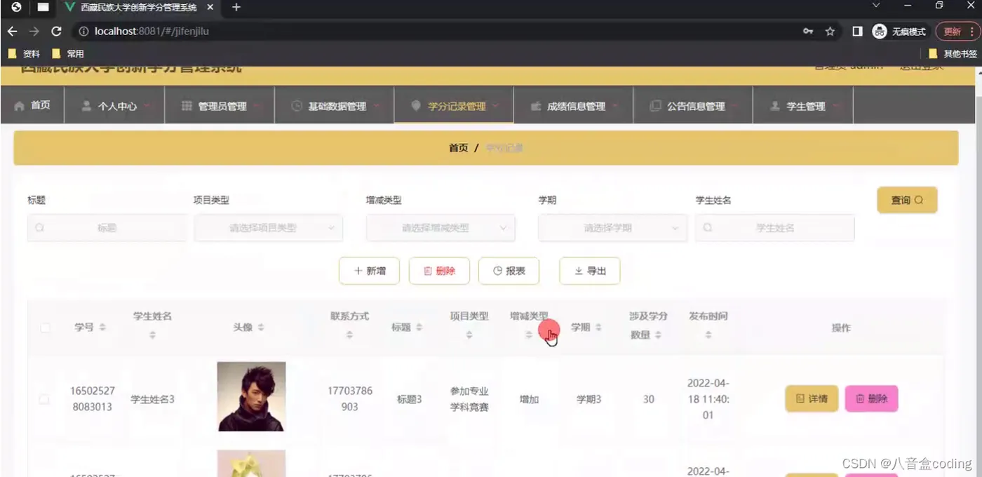 简介: 基于SpringBoot+Vue+uniapp的西藏民族大学创新学分管理系统的详细设计和实现(源码+lw+部署文档+讲解等)