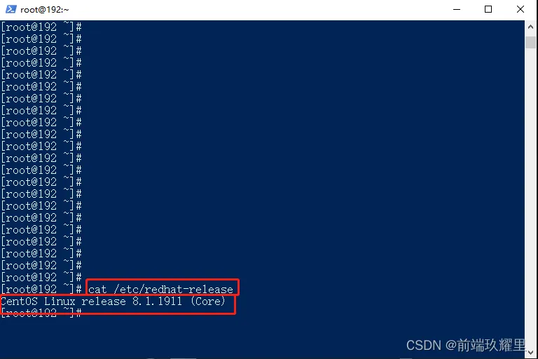 2.5 输入 cat /etc/redhat-release 查看当前 CentOs 系统版本: