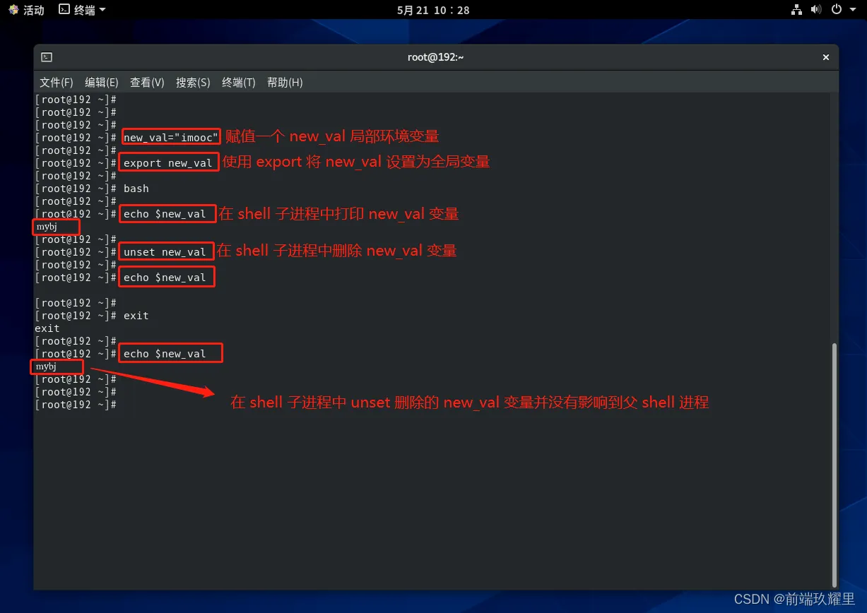 new_val="mybj" export new_val bash echo $new_val unset new_val echo $new_val exit echo $new_val