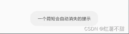 这个在 Android 中被称为 Toast,用来短暂的展示一些简短的提示信息。相比弹窗来讲它对用户的打扰更小,在提示一段时间之后会自动消失,通常用来提示当前的状态或者一些不太重要的信息。接下来我们先看看 Toast 的相关特性然后一起动手编写一些与 Toasts 相关的示例代码。