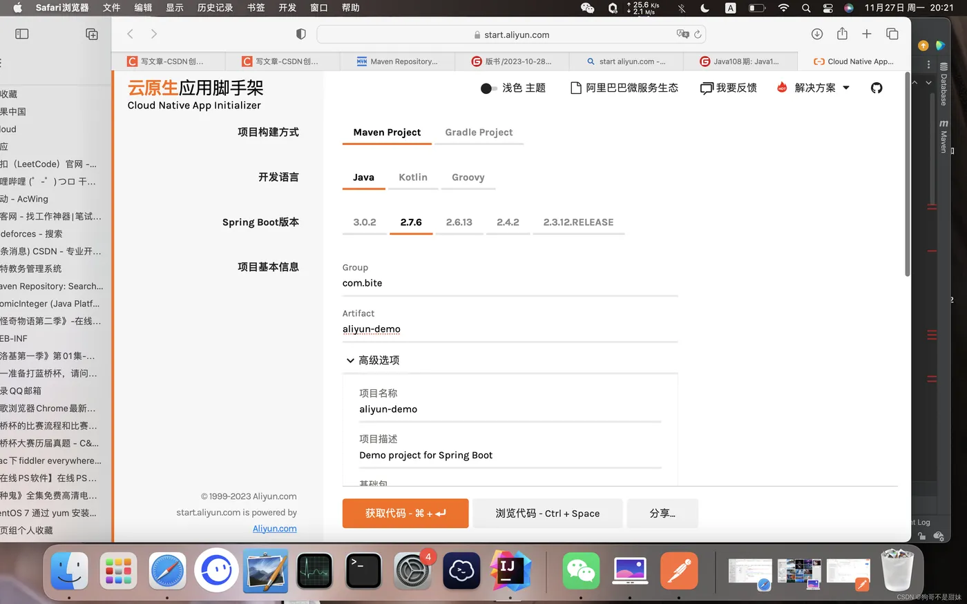 1.如何创建Spring Boot项目,阿里云上去下载代码,然后使用idea打开,就可以继续使用原先8的版本
