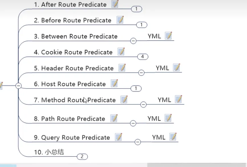 Spring Cloud Gateway包括许多内置的Route Predicate工厂。所有这些Predicate都与HTTP请求的不同属性匹配。多个RoutePredicate工厂可以进行组合
