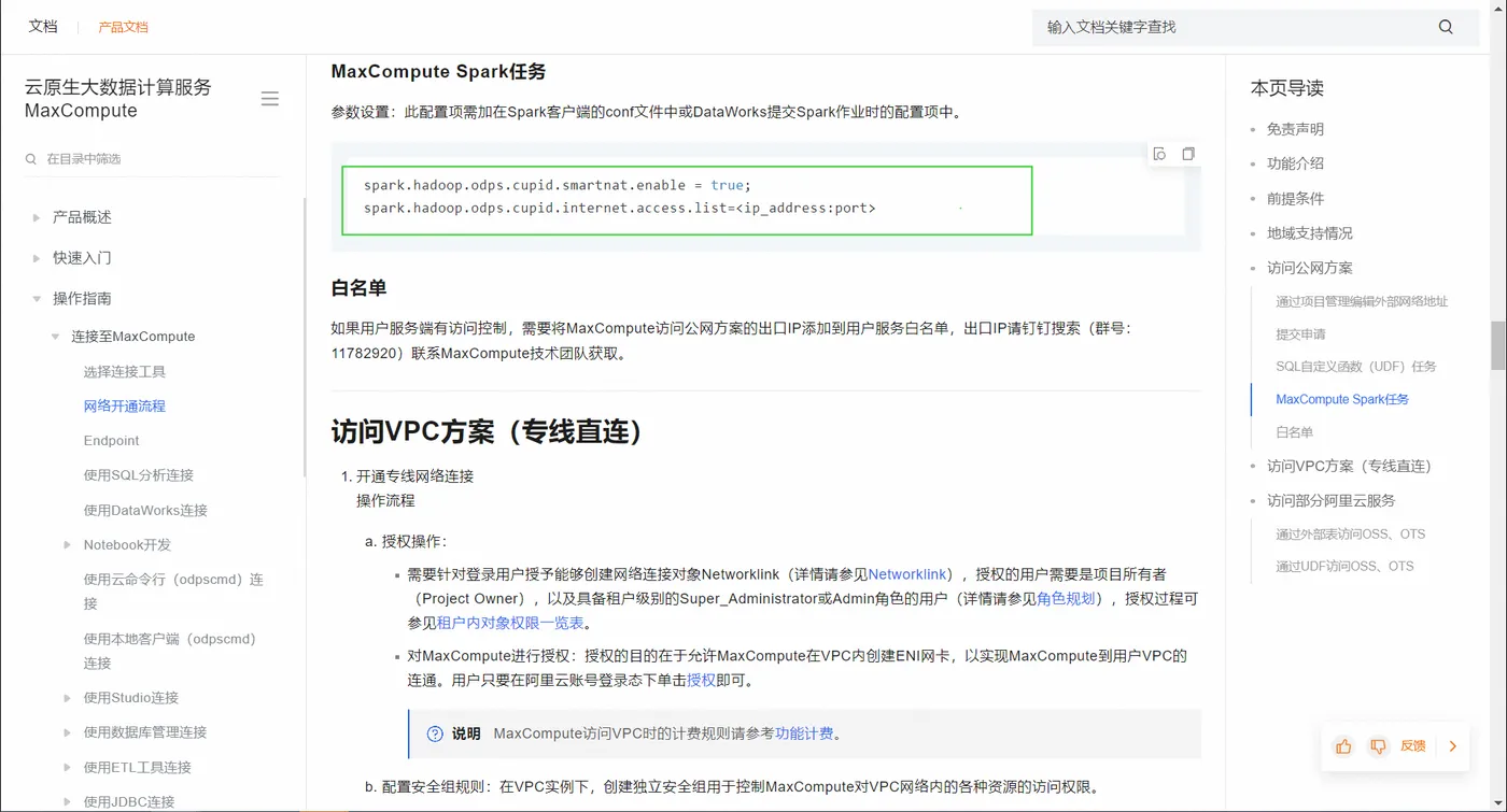 ODPS spark节点的话因为是spark作业类型,需要加一下访问外网的配置。