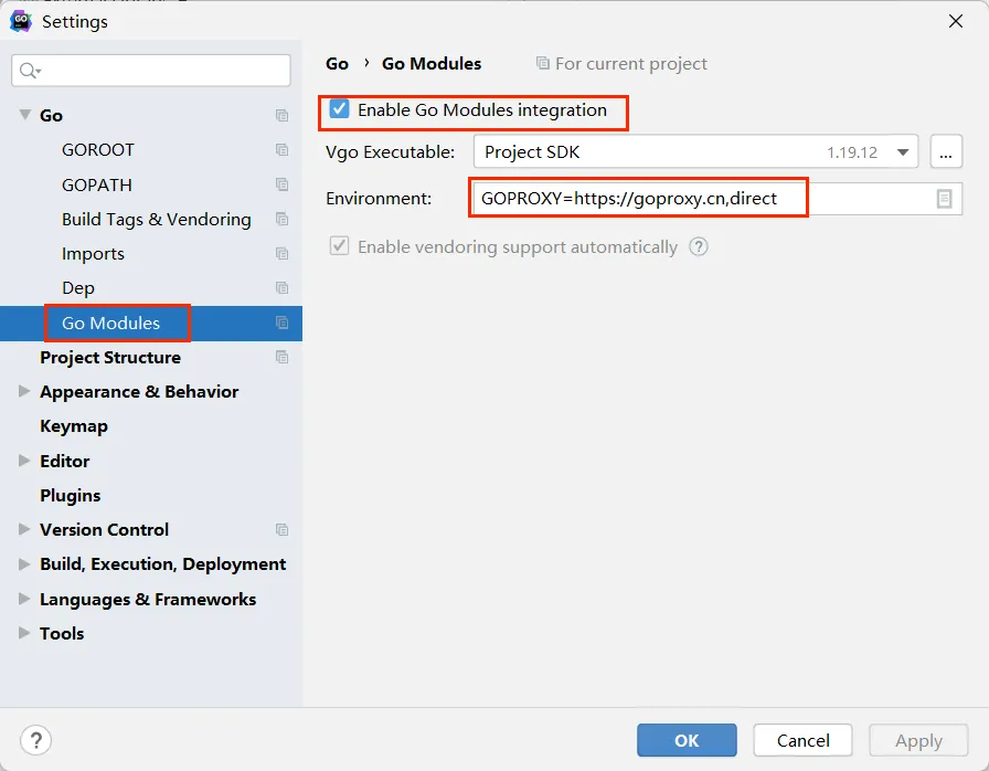 出现报错:go: modules disabled by GO111MODULE=off; see 'go help modules',说明需要开启: