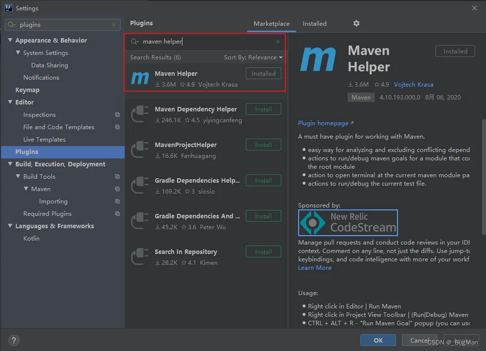 博主,这里已经提前安装好了,第一次安装的话,安装完重启一下IDEA才会生效。