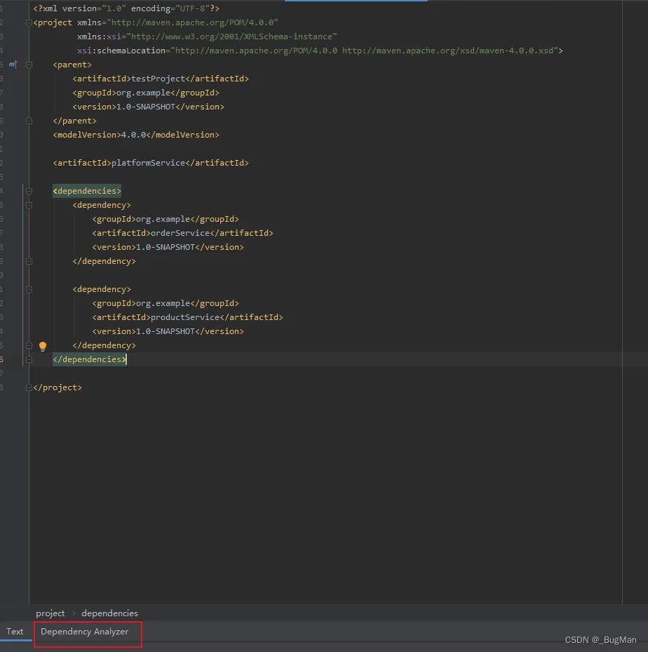 <dependency> <groupId>org.example</groupId> <artifactId>orderService</artifactId> <version>1.0-SNAPSHOT</version> </dependency> <dependency> <groupId>org.example</groupId> <artifactId>productService</artifactId> <version>1.0-SNAPSHOT</version> </dependency>