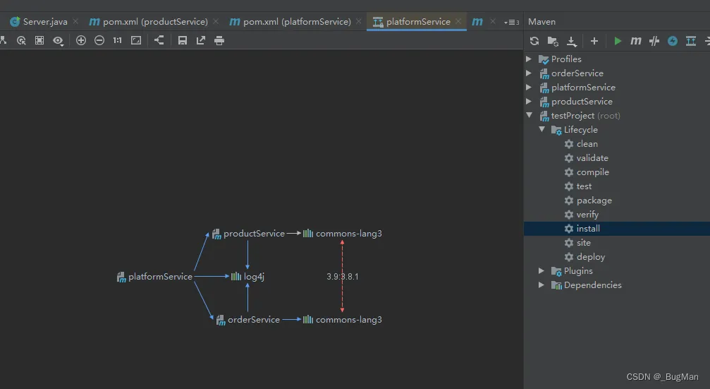 <dependencies> <dependency> <groupId>org.example</groupId> <artifactId>orderService</artifactId> <version>1.0-SNAPSHOT</version> </dependency> <dependency> <groupId>org.example</groupId> <artifactId>productService</artifactId> <version>1.0-SNAPSHOT</version> <exclusions> <exclusion> <artifactId>commons-lang3</artifactId> <groupId>org.apache.commons</groupId> </exclusion> </exclusions> </dependency> </dependencies>