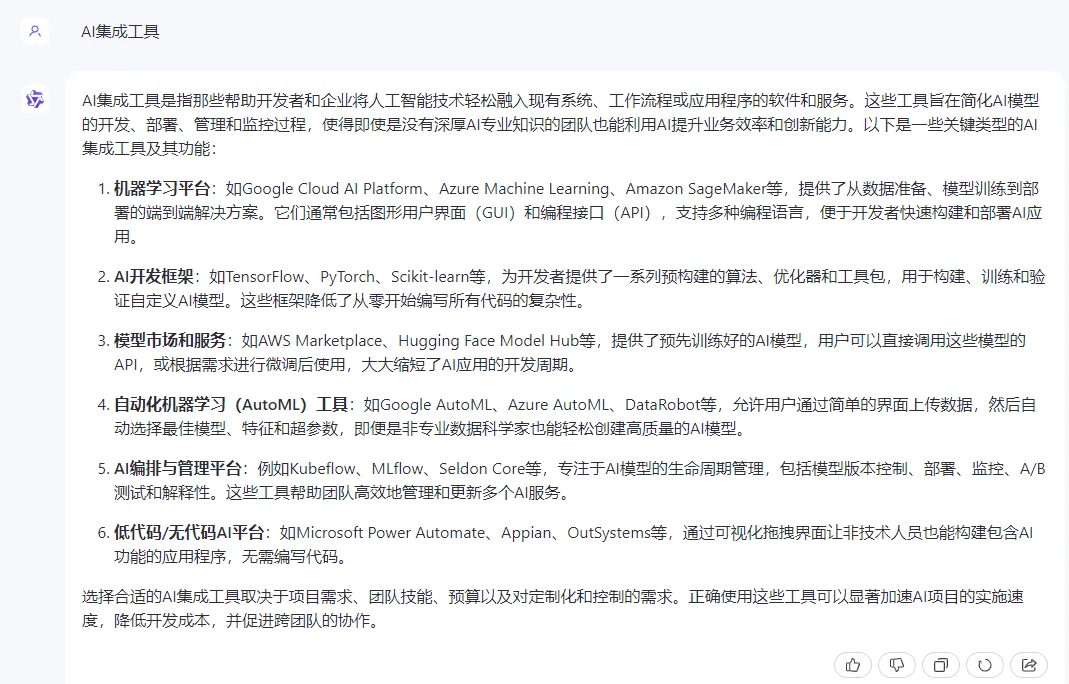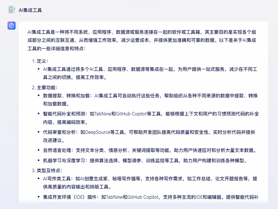 除了AI代码辅助工具,还会用到通义千问或者文心一言,平常工作中有需要查询的内容,会用这两个文本对话工具,