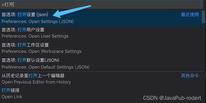 MacOS使用 Command + Sheft + P,windows 使用 Ctrl + Sheft + P 搜索首选项:打开设置(json),然后把下面配置粘贴进去: