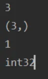 - .shape 为 (3,) 代表一维数组,有三个元素