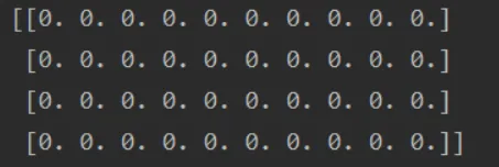 array_zero = np.zeros([4, 10], dtype=np.float) print(array_zero)