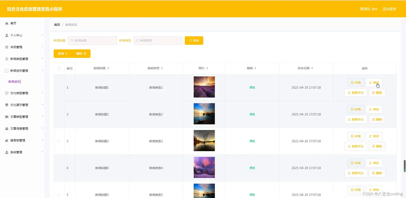 基于SpringBoot+Vue+uniapp的综合文化信息管理系统的详细设计和实现(源码+lw+部署文档+讲解等)