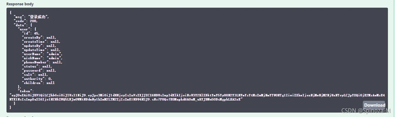 public AjaxResult login(LoginVo loginVO) throws IOException { //验证码校验 @NotBlank String kaptchaNum = loginVO.getKaptchaNum(); @NotBlank String kaptcha = loginVO.getKaptcha(); String kaptchaReids = redisService.get(RedisKey.getKaptcha(kaptchaNum)); if (kaptchaReids==null) { return AjaxResult.error("验证码不存"); } if (!kaptcha.equals(kaptchaReids)) { return AjaxResult.error("验证码错误"); } redisService.delete(RedisKey.getKaptcha(kaptchaNum)); @NotBlank @Length(min = 6, max = 20) String username = loginVO.getUsername(); User user = userMapper.login(username); if (user == null) { return AjaxResult.error("用户不存在"); } if (user != null && user.getPassword() != null) { if (PasswordUtil.checkPassword(user.getSalt(), loginVO.getPassword(), user.getPassword())) { JwtInfo jwtToken = JwtTool.createJwtToken(user.getId()); redisService.set(RedisKey.getToken(jwtToken.getJwtId()), jwtToken, tokentime, TimeUnit.DAYS); //查出敏感信息 user.setPassword(null); user.setSalt(null); HashMap<String, Object> hm = new HashMap<>(1); hm.put("token", jwtToken.getToken()); hm.put("user", user); return AjaxResult.success("登录成功", hm); } return AjaxResult.error("密码错误"); } return AjaxResult.error("登录失败"); }