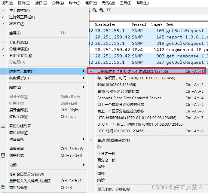 视图->时间显示格式->选择合适的显示格式(快捷键Ctrl+Alt+1)