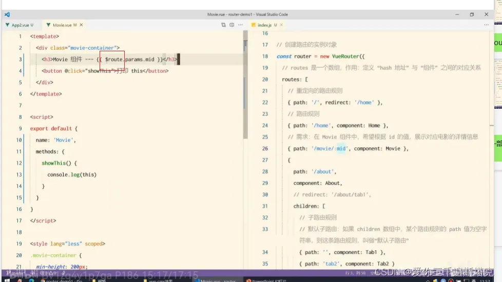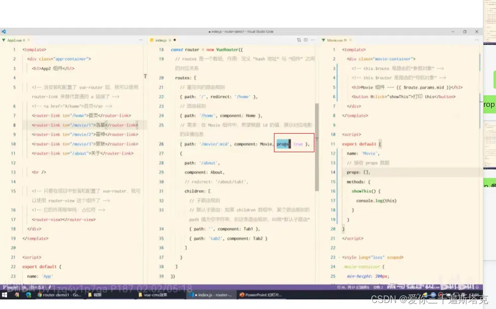 33、$router是参数对象,在路由的规则上加上prop 就可以开启prop传参