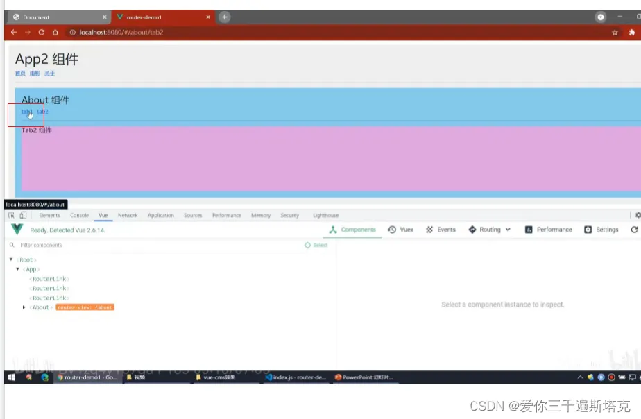 23、用table 属性,为tab添加两条子路由规则