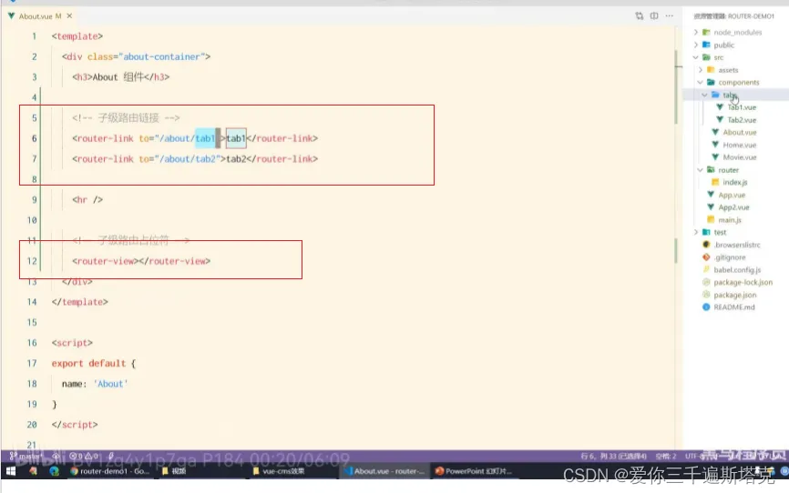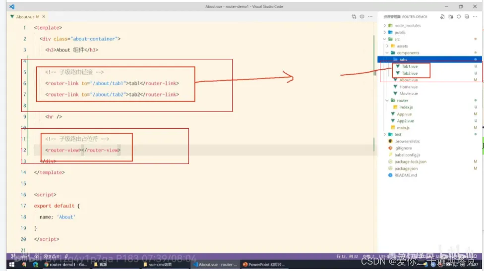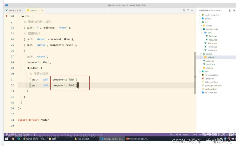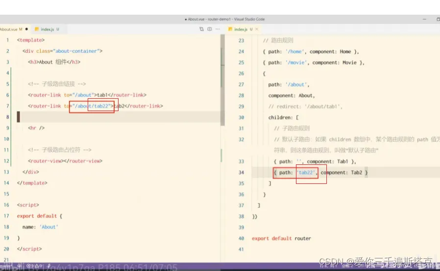 21、about后面还有一些子路由的规则,使用children属性