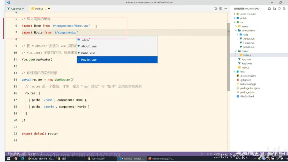 这里是想要使用的第一步,别忘记导包 8、一般Vue使用路由配置之前,我们都要先下载一个包的