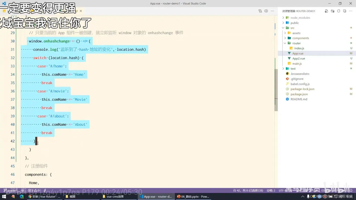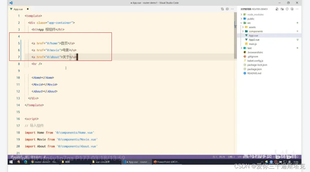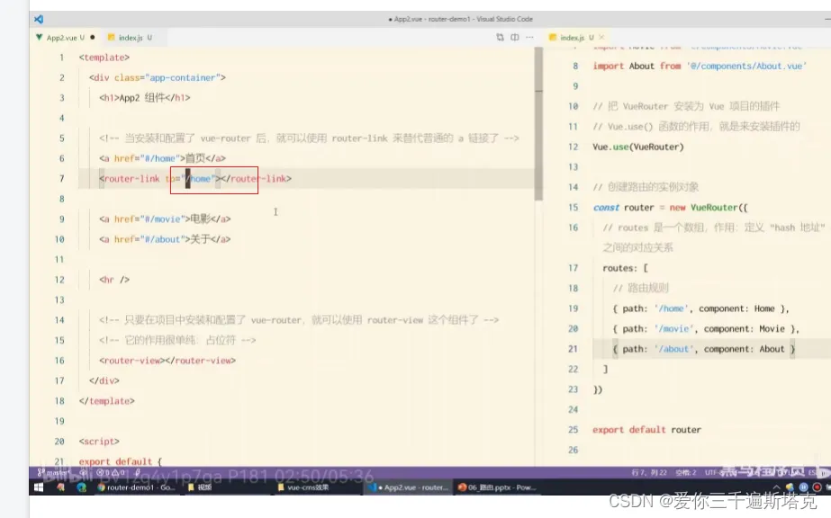 17、在index.js文件导入组件,router-link后面不用写#: